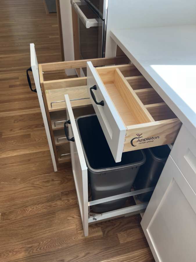 Appleton Design Group now features its own line of custom, locally made cabinetry. These cabinets are made in our own shop a few towns away and are customizable up to a 32” of an inch. We do not need to keep within any size boundaries as you do with many large kitchen companies. Our shop often says “if you can draw it, we can build it”. They are extremely well made but affordable.